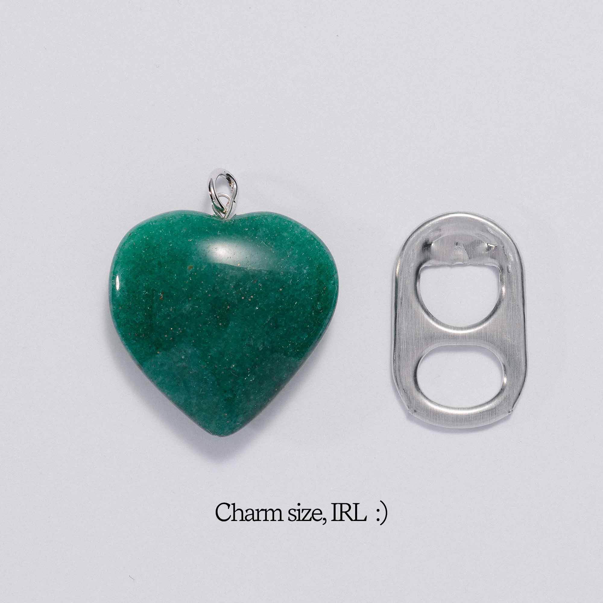 Gemstone variation: Each charm is made from genuine green aventurine. Color and natural markings will vary. No two are exactly alike.