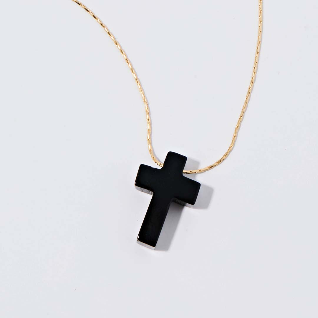 Grounded strength meets divine faith. Black Onyx absorbs the bad vibes while the cross keeps you connected to something bigger. Fixed on our slider chain that adjusts from choker to 26".
