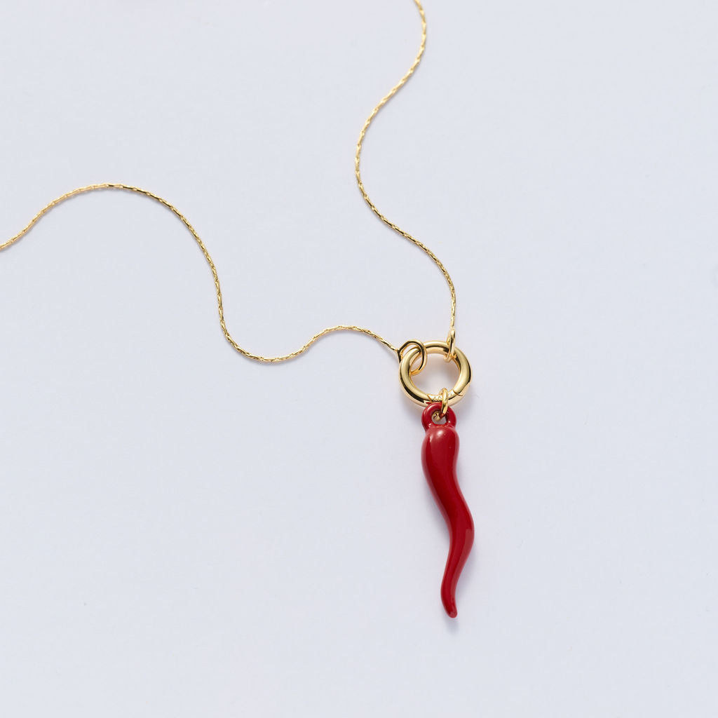 Charm: Made from recycled metals and finished in a rich red enamel with a glossy topcoat for extra shine.