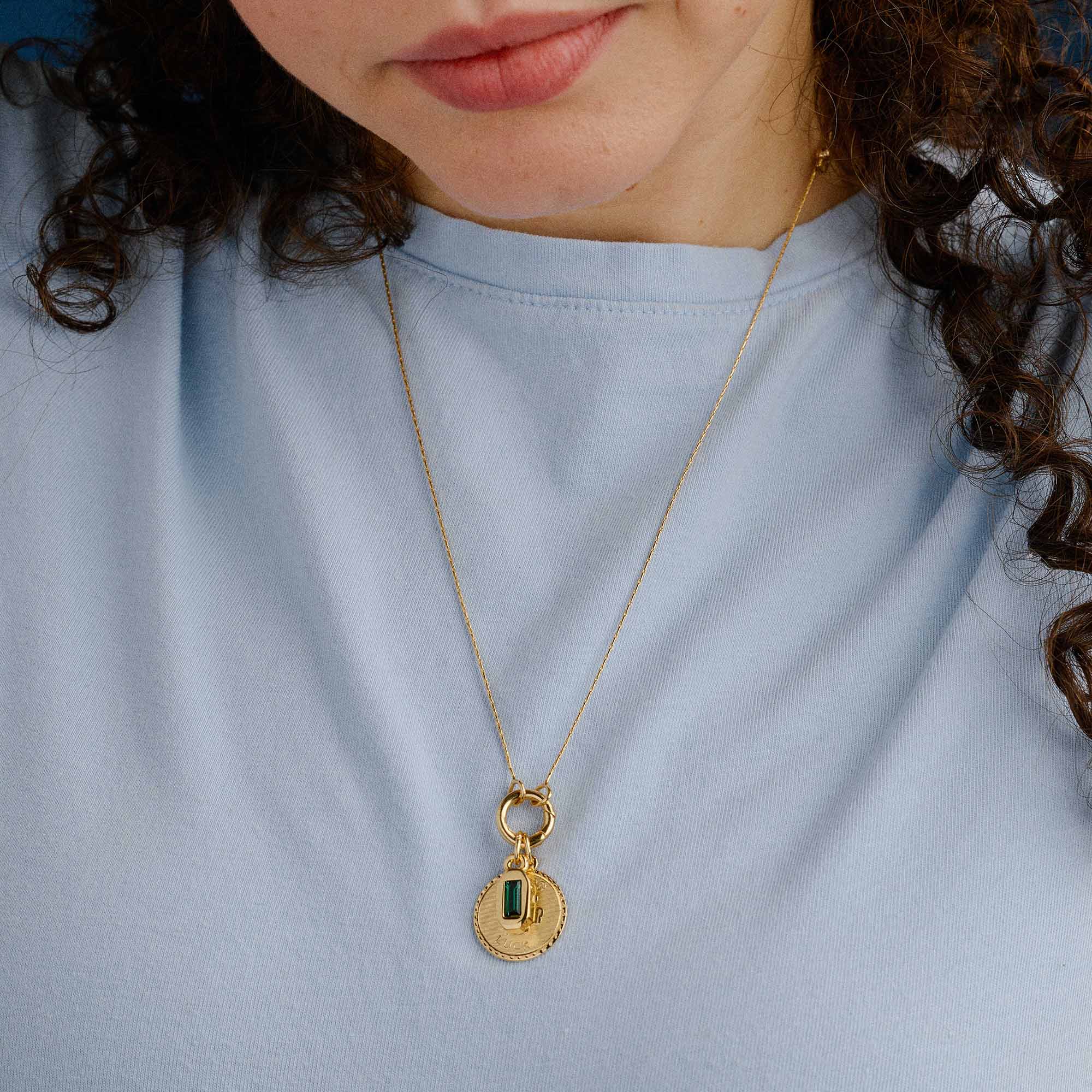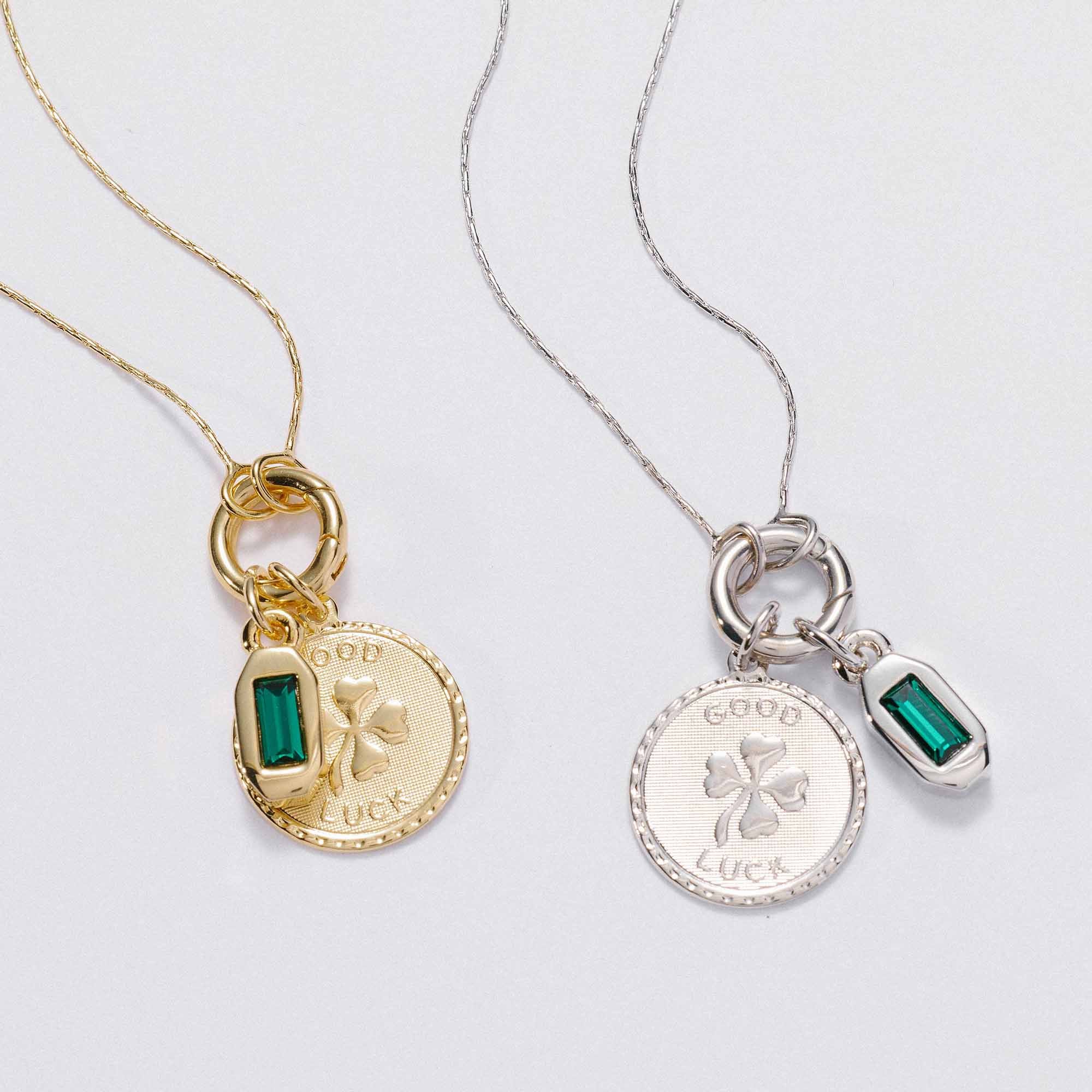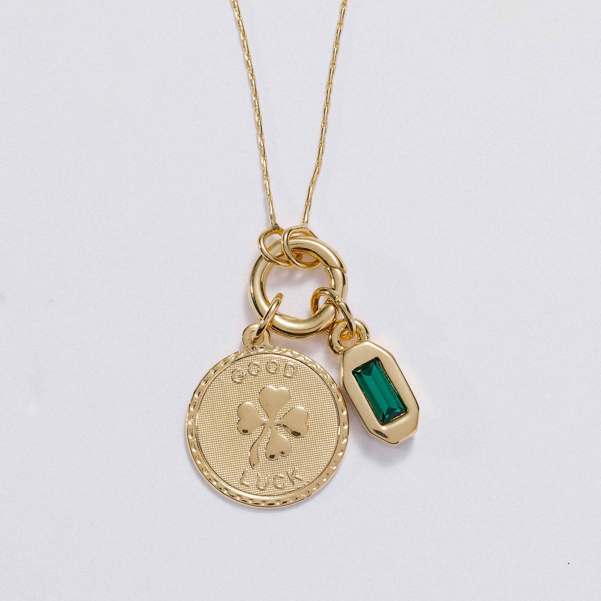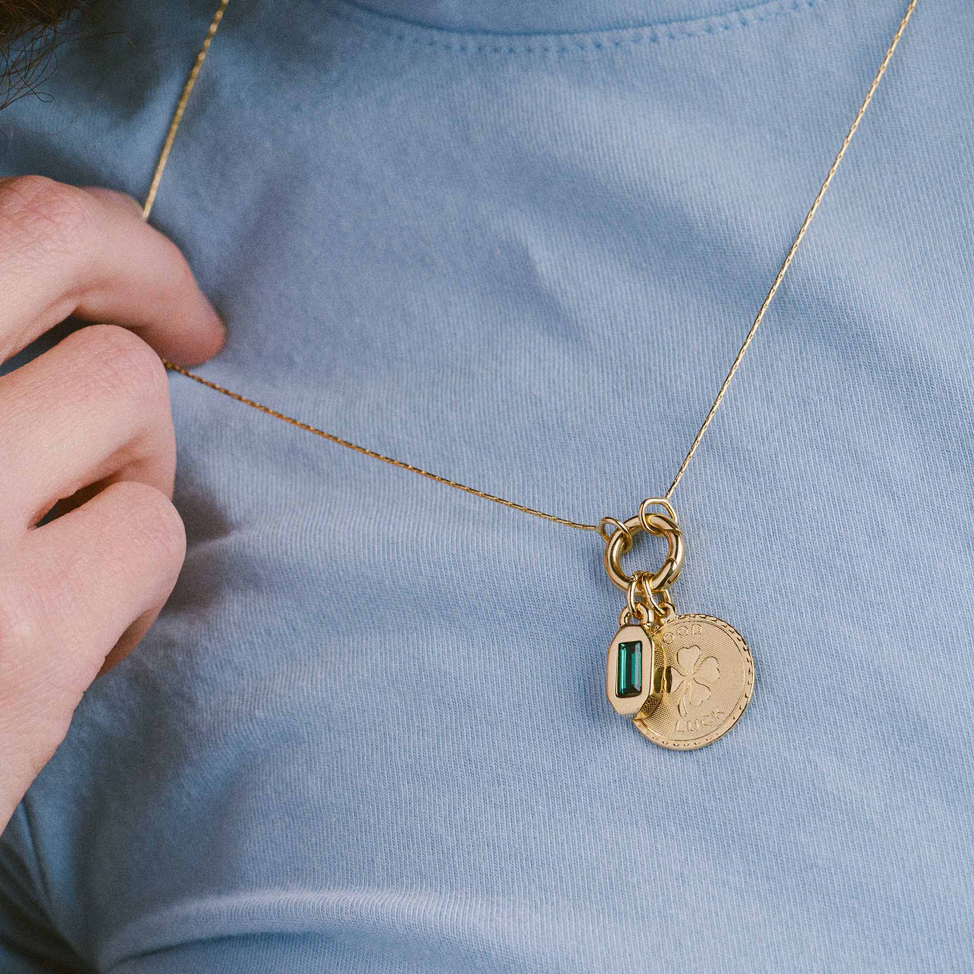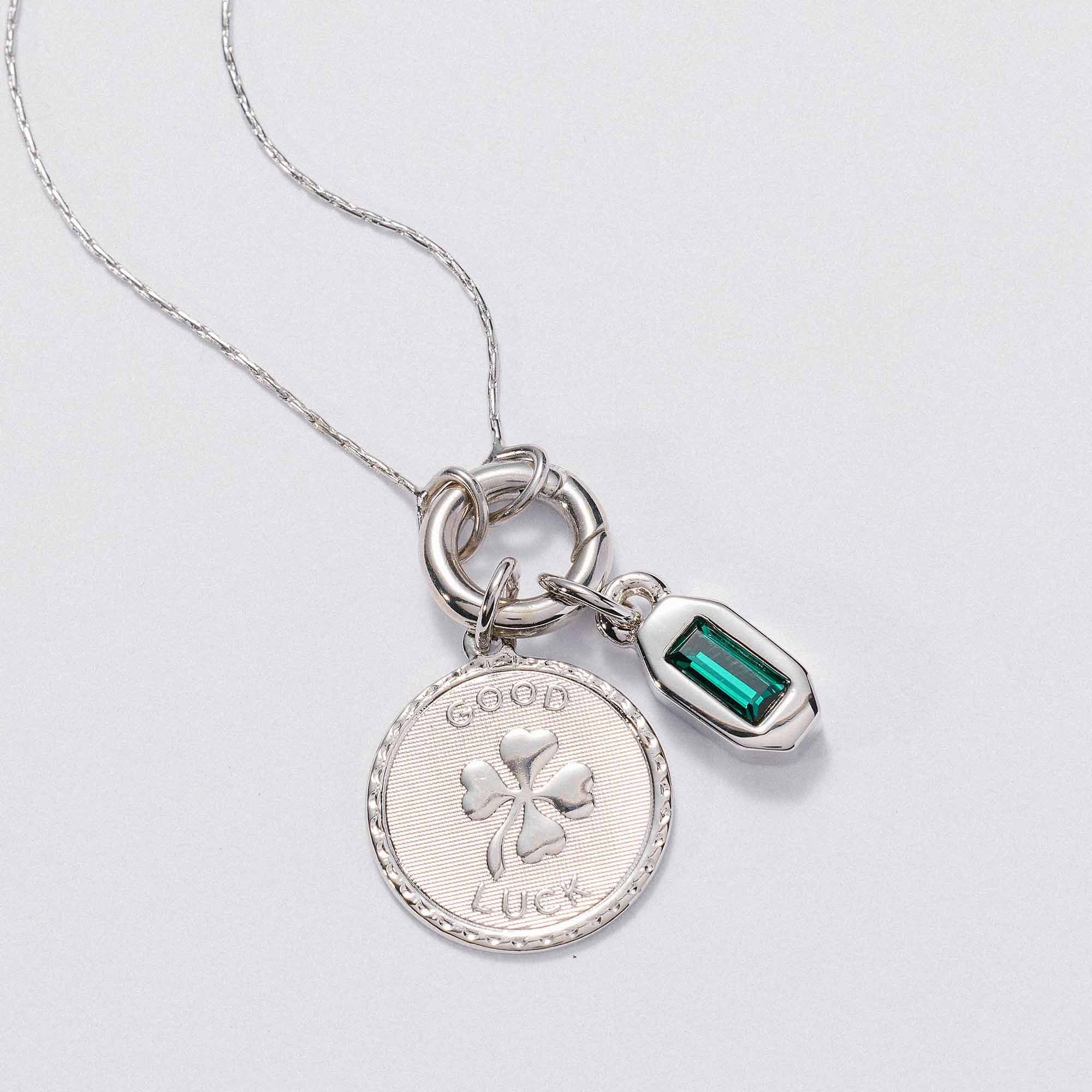 Featuring the Good Luck Token Charm paired with an emerald color baguette crystal for fresh start energy and heart forward momentum. A reminder that you can begin again, stay open, and let good things find you.