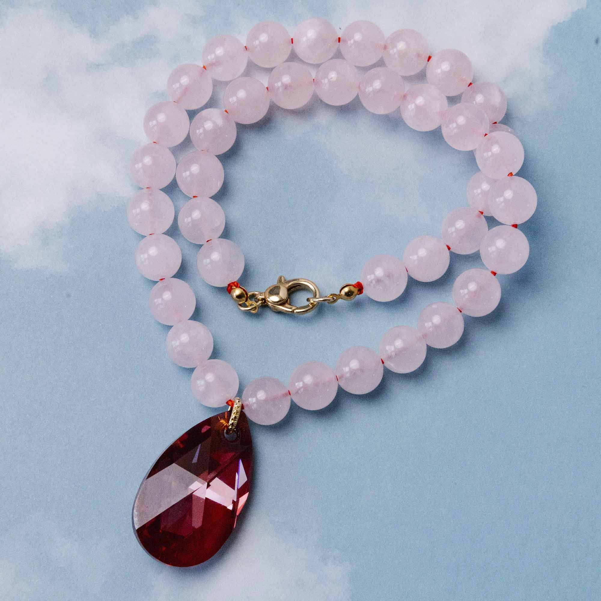 Designed in-house using hand-strung, genuine rose quartz 10mm beads adorned with an oversized authentic Austrian crystal. Created exclusively for Theresa Caputo, rose quartz promotes healing and self-love, while an Astral Rose crystal pendant reminds you to remember your sparkle. 16 inches in length with a lobster claw closure—only 20 are available of this exclusive piece.